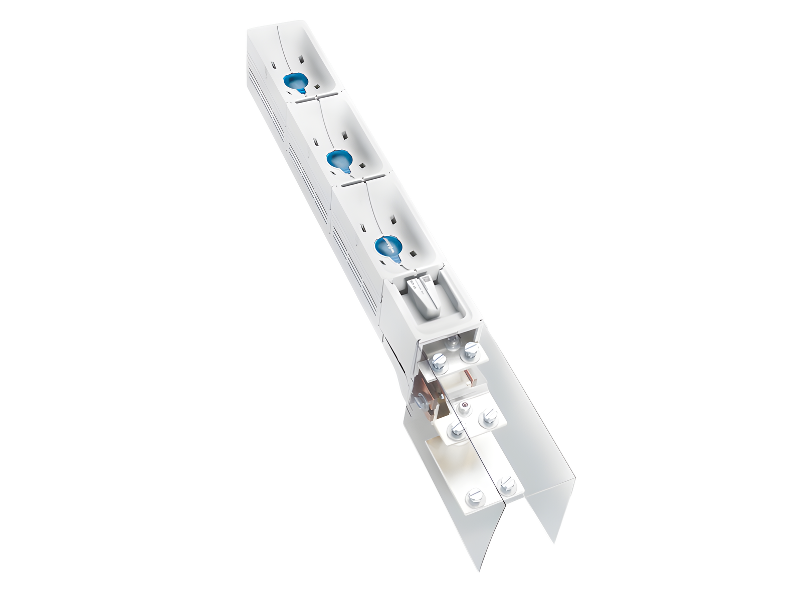 for 3 cable lugs 300mm² (offset arrangement), for 4 cable lugs 240 mm² or lam. Cu 80 x 10